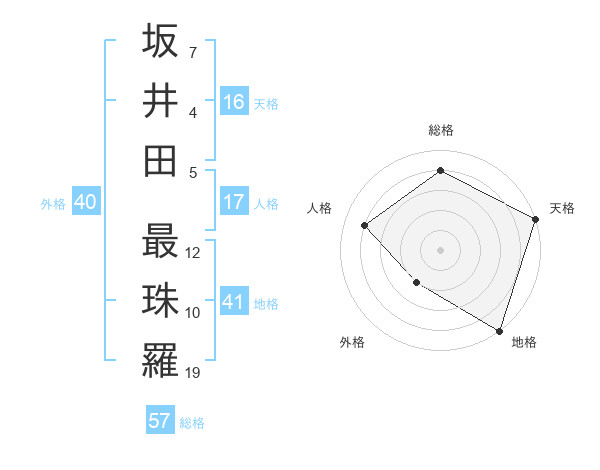 坂井田 最珠羅さんを姓名の画数から五運を鑑定