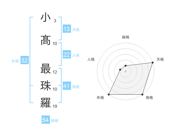 小髙 最珠羅さんを姓名の画数から五運を鑑定
