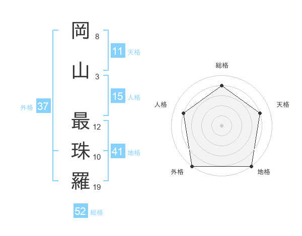 岡山 最珠羅さんを姓名の画数から五運を鑑定