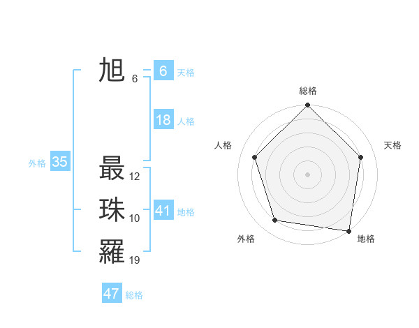 旭 最珠羅さんの地格は41画の5点!