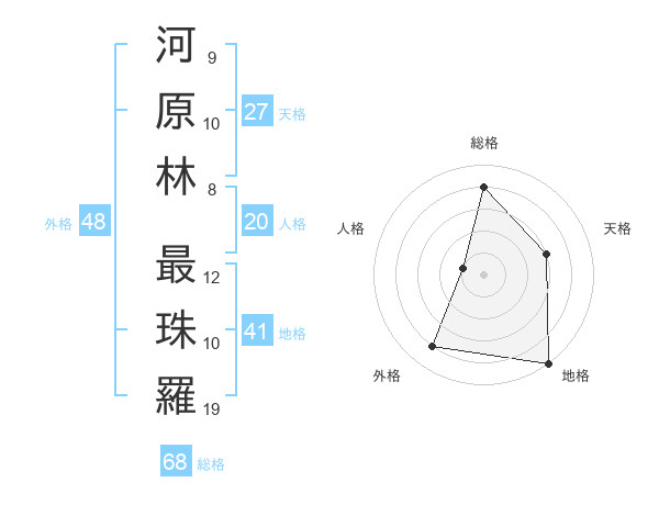 河原林 最珠羅さんを姓名の画数から五運を鑑定