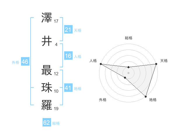 澤井 最珠羅さんを姓名の画数から五運を鑑定