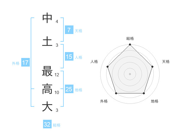 中土 最高大さんの総格は32画の5点!