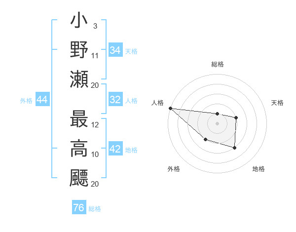 小野瀬 最高飃さんを姓名の画数から五運を鑑定