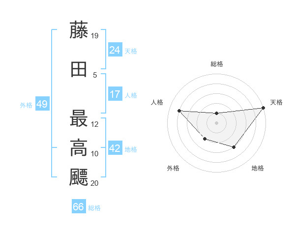 藤田 最高飃さんを姓名の画数から五運を鑑定