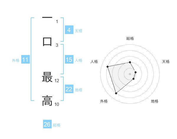 一口 最高さんの地格は22画の1点!