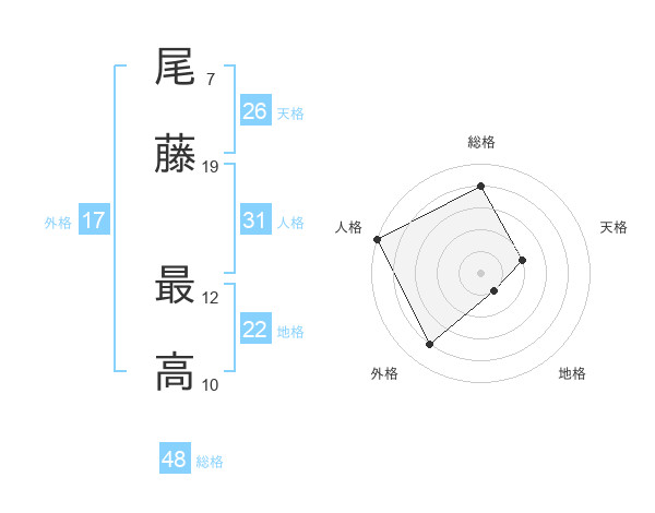 尾藤 最高さんの外格は17画の4点!