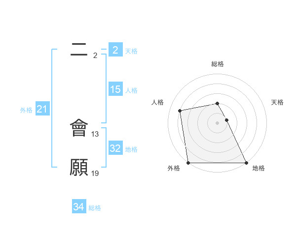 二 會願さんの外格は21画の5点!