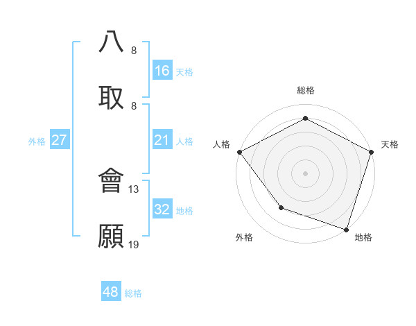 八取 會願さんの天格は16画の5点!
