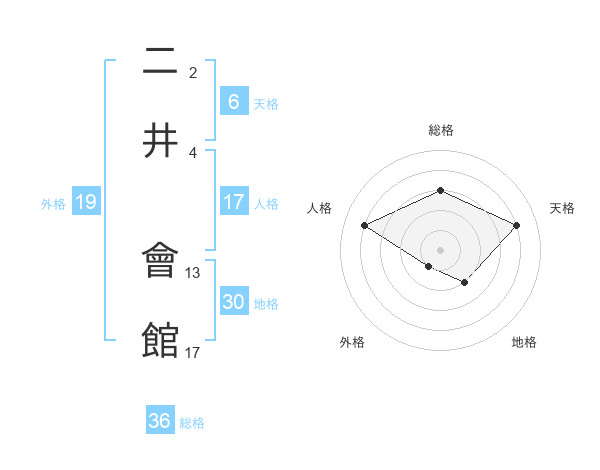 二井 會館さんの天格は6画の4点!