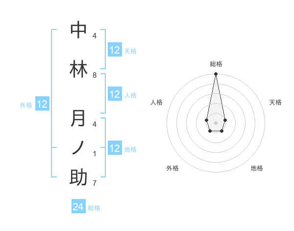中林 月ノ助さんの総格は24画の5点!