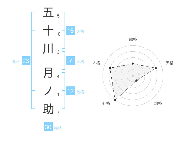 五十川 月ノ助さんの外格は23画の5点!