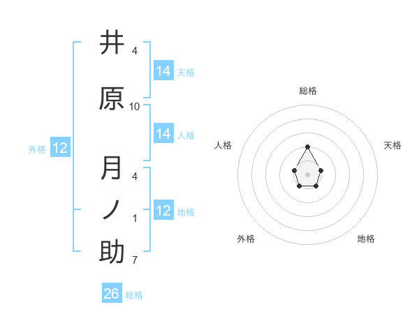 井原 月ノ助さんを姓名の画数から五運を鑑定
