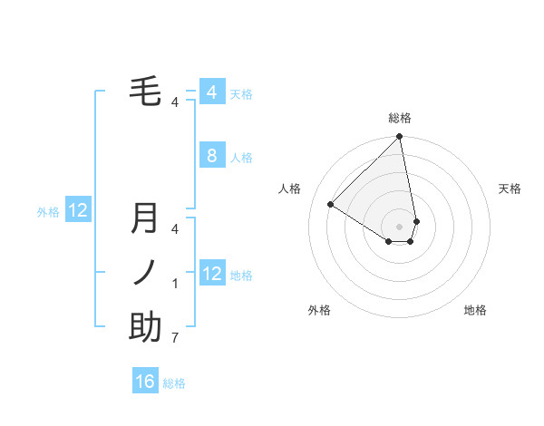 毛 月ノ助さんを姓名の画数から五運を鑑定