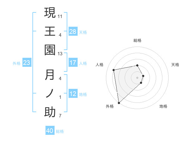 現王園 月ノ助さんを姓名の画数から五運を鑑定