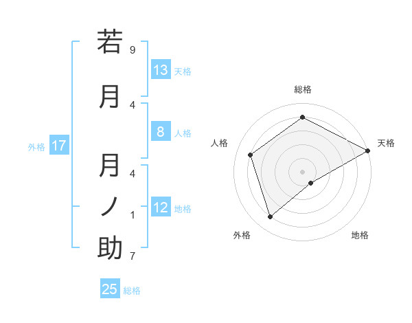 若月 月ノ助さんを姓名の画数から五運を鑑定
