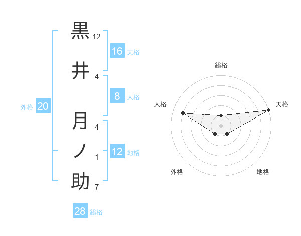 黒井 月ノ助さんを姓名の画数から五運を鑑定