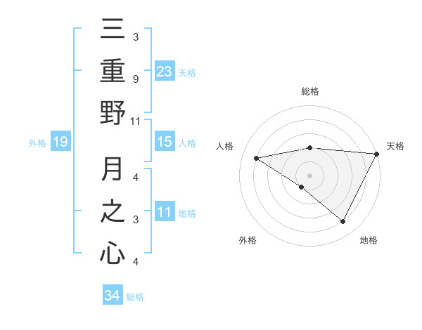 三重野 月之心さんを姓名の画数から五運を鑑定