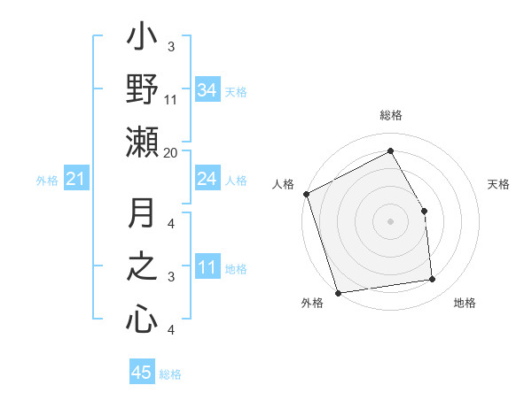 小野瀬 月之心さんの外格は21画の5点!