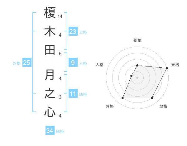 榎木田 月之心さんの天格は23画の5点!