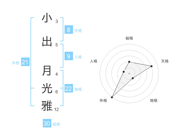 小出 月光雅さんを姓名の画数から五運を鑑定