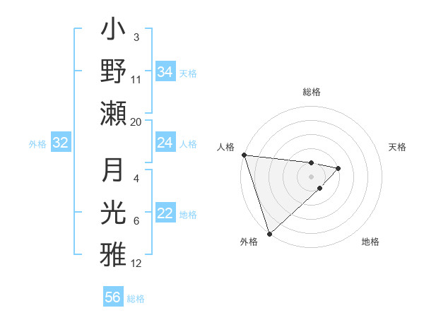 小野瀬 月光雅さんを姓名の画数から五運を鑑定