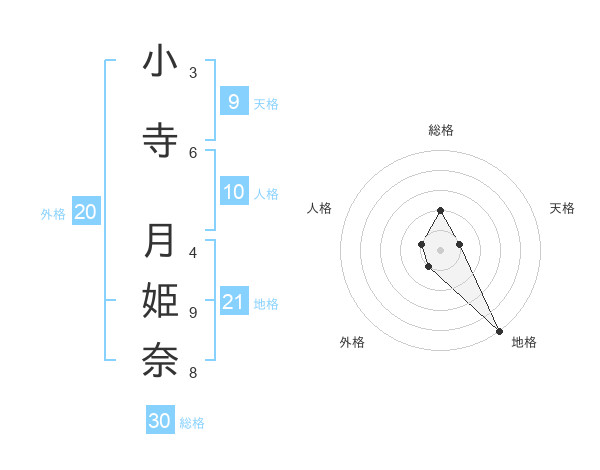 小寺 月姫奈さんを姓名の画数から五運を鑑定
