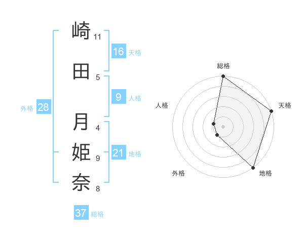 崎田 月姫奈さんの天格は16画の5点!
