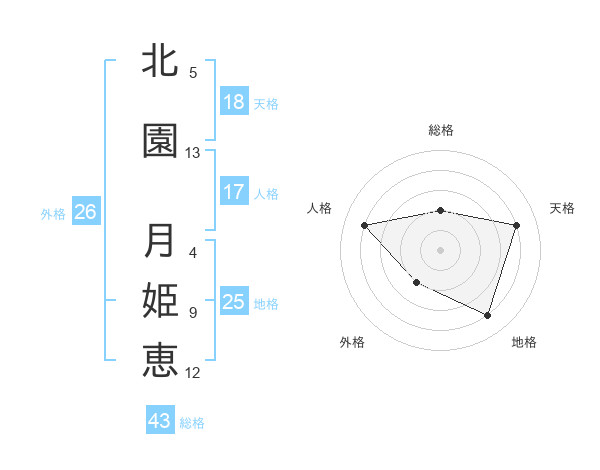 北園 月姫恵さんの天格は18画の4点!