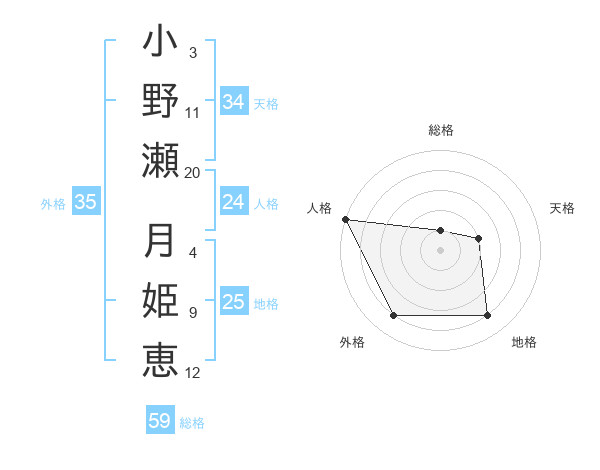 小野瀬 月姫恵さんを姓名の画数から五運を鑑定