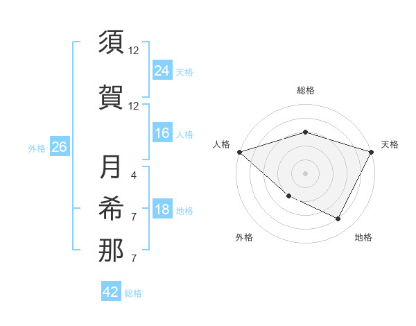 須賀 月希那さんを姓名の画数から五運を鑑定