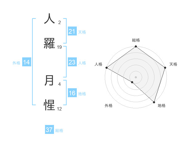 人羅 月惺さんの総格は37画の5点!