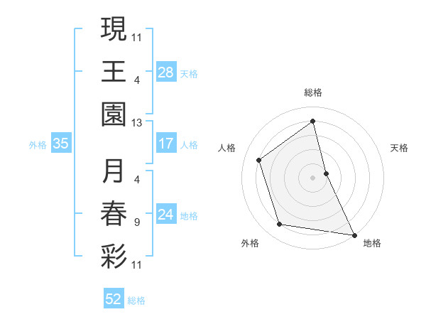 現王園 月春彩さんの総格は52画の4点!