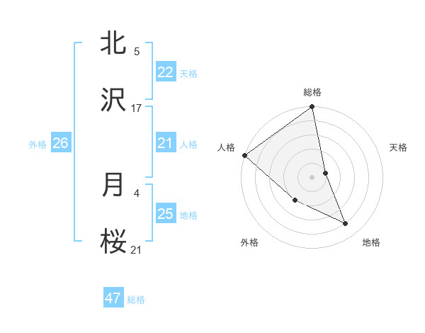 北沢 月桜さんを姓名の画数から五運を鑑定