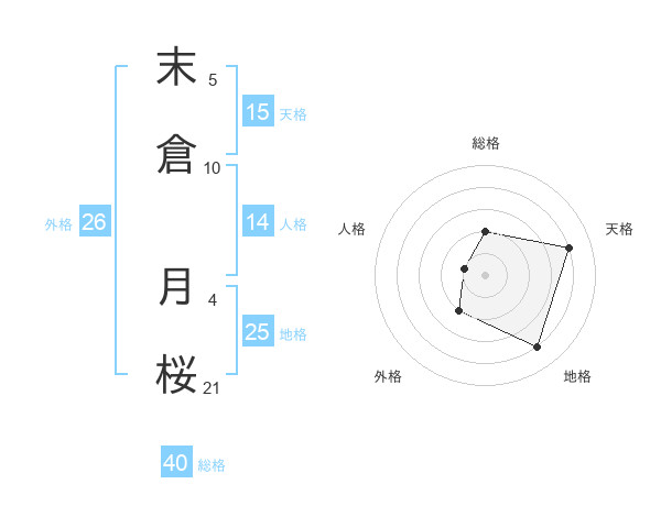 末倉 月桜さんを姓名の画数から五運を鑑定