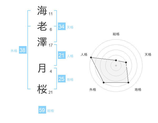 海老澤 月桜さんの外格は38画の4点!