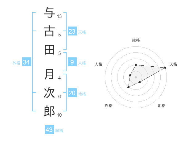 与古田 月次郎さんを姓名の画数から五運を鑑定