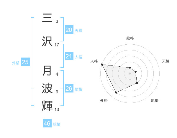 三沢 月波輝さんを姓名の画数から五運を鑑定