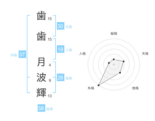 歯歯 月波輝さんの外格は37画の5点!