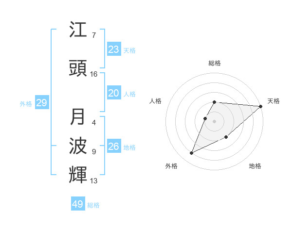 江頭 月波輝さんを姓名の画数から五運を鑑定