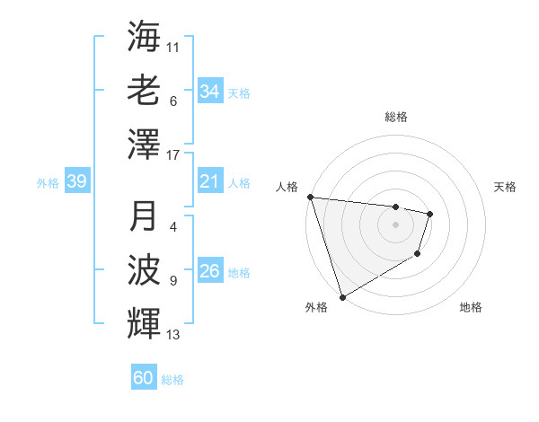 海老澤 月波輝さんを姓名の画数から五運を鑑定