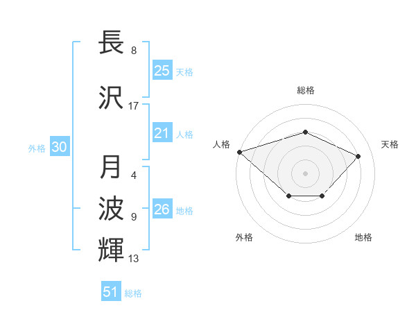 長沢 月波輝さんを姓名の画数から五運を鑑定