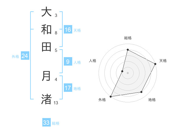 大和田 月渚さんの天格は16画の5点!