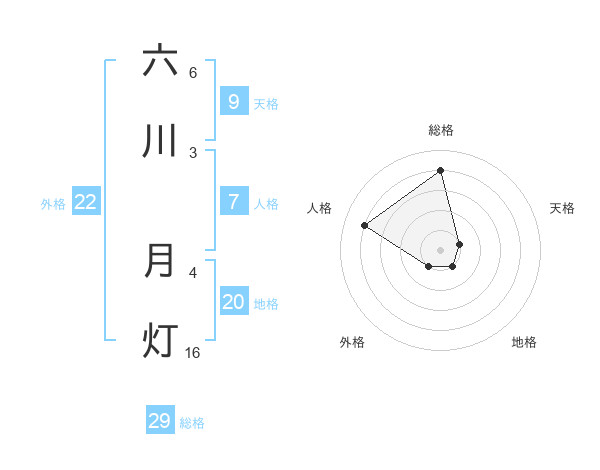 六川 月灯さんの総格は29画の4点!
