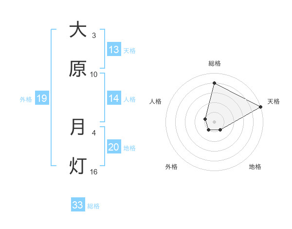大原 月灯さんの総格は33画の4点!