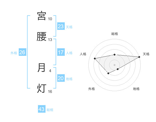 宮腰 月灯さんの天格は23画の5点!
