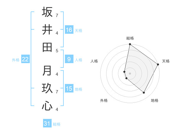 坂井田 月玖心さんを姓名の画数から五運を鑑定
