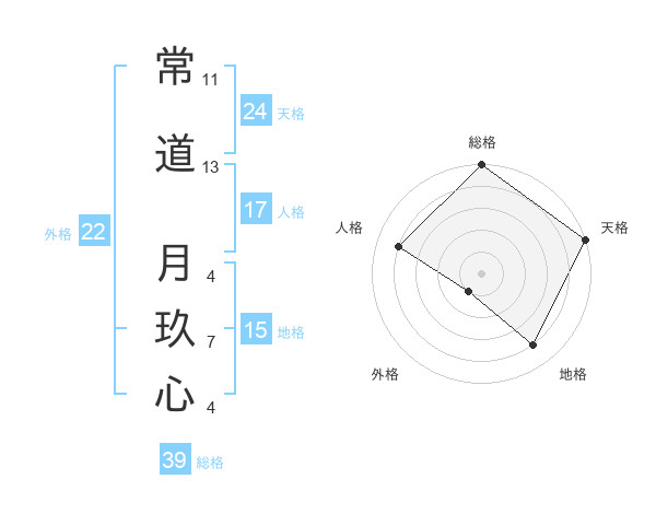 常道 月玖心さんの天格は24画の5点!