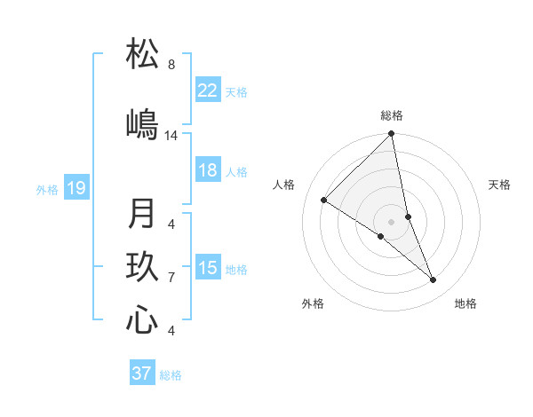 松嶋 月玖心さんの総格は37画の5点!
