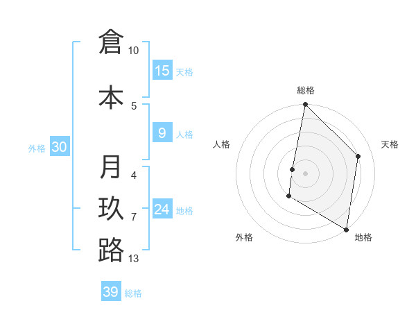 倉本 月玖路さんを姓名の画数から五運を鑑定